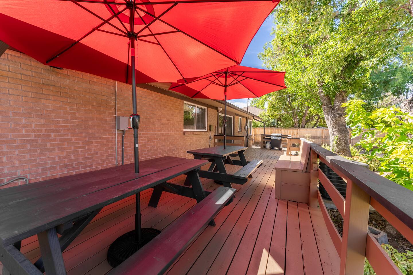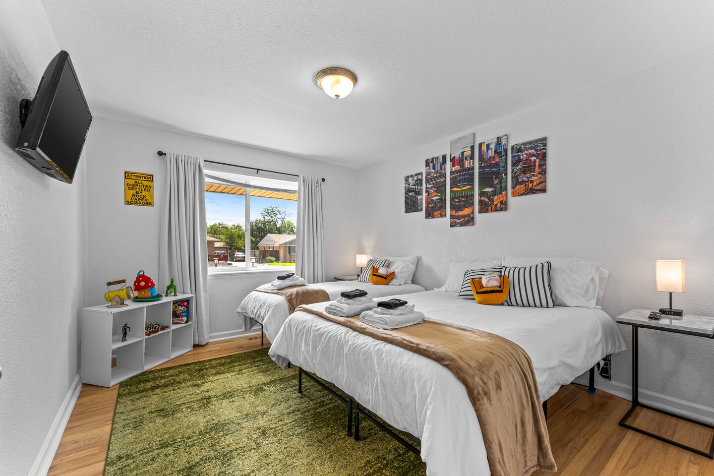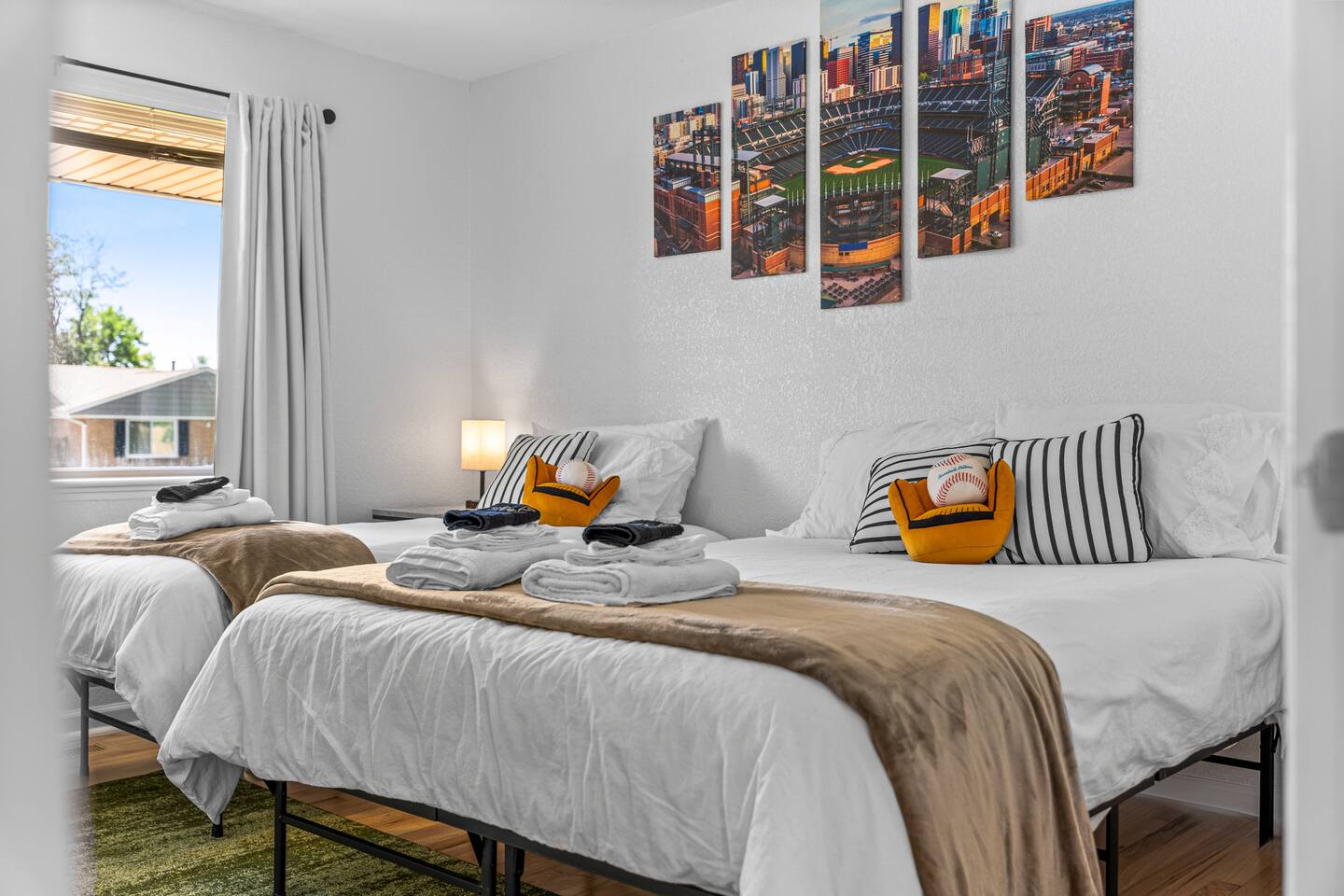 Spacious 6-Bedroom Retreat in Denver โ Perfect for Large Groups! ๐ Welcome to your ultimate Denver getaway! ๐ Our expansive 6-bedroom, 3-bathroom home is designed with groups in mind, offering plenty of space, comfort, and entertainment for everyone. Centrally located, this property is ideal for families, friends ๐ซ, or corporate groups ๐ผ looking to explore the Mile High City ๐. Property Highlights: ๐๏ธ 6 Spacious Bedrooms: Sleep comfortably with 2 king beds ๐, 3 queen beds ๐ธ, 6 twin beds ๐๏ธ, and 2 twin air mattresses. Each bedroom is uniquely themed, including fun Colorado-inspired rooms ๐. ๐ฎ Ample Entertainment: With 5 TVs ๐บ and arcade games ๐ฏ, youโll never be bored! Movie nights or game nights, thereโs something for everyone. ๐๏ธ Living Areas: Enjoy two spacious living rooms โ perfect for relaxing after a day of sightseeing or catching up with friends and family. ๐ฝ๏ธ Fully Equipped Kitchen: Cook up a feast ๐ณ in the fully stocked kitchen ๐ด and gather around the 8-person dining table ๐ฝ๏ธ or take the meal outside to two 6-person picnic tables with umbrellas โ๏ธ. ๐ณ Outdoor Fun: Spacious yards ๐ก for lawn games ๐ and outdoor activities โ enjoy Coloradoโs sunny weather while making lasting memories. ๐ป Workspaces: Need to get some work done? Our dedicated workspaces provide a quiet environment ๐งโ๐ป to focus and be productive. ๐ Convenience: Centrally located with a large driveway ๐ and ample street parking ๐, offering easy access to all of Denverโs top attractions. Perfect for Large Groups: Tailor-made for groups traveling together, this home offers a variety of sleeping arrangements ๐ and plenty of common areas to relax and enjoy Denver. Prime Location: A short drive ๐ to Denverโs best attractions ๐, dining ๐, shopping ๐๏ธ, and outdoor adventures ๐ฒ. Whether itโs a weekend getaway, family reunion, or business retreat, this is the perfect home base. โผ๏ธ IMPORTANT: Please Read Before Booking Please take a moment to read this description, especially the section labeled "Other Details to Note," where we highlight unique features or important information about the home. Transparency is key, and weโve provided detailed information to help you understand what to expect. If you have any questions or need clarification, donโt hesitate to reach outโweโre here to help! Thank you! ๐ License #STR-24-045