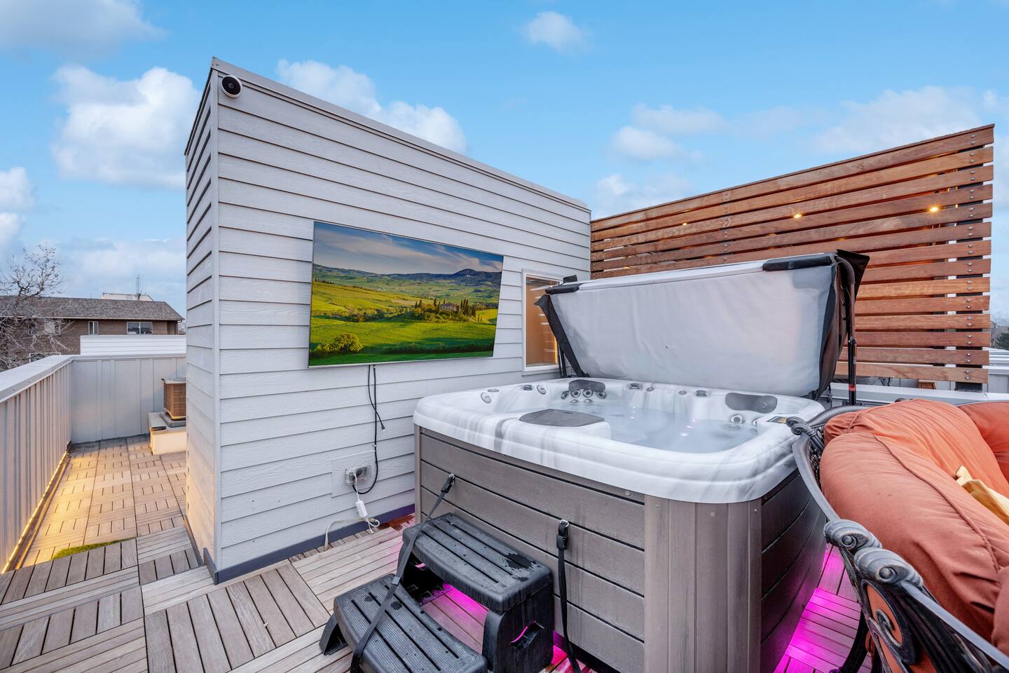 β Sleeps up to 5 guests (1 king Sleep Number bed, 1 twin murphy bed, 1 optional queen air mattress) ποΈ β Hot tub for 4 with lake & mountain views ποΈπ₯, fire pit, grill, and smart TV πΊ β Modern, well-equipped kitchen with coffee bar β, spices πΆοΈ, Ninja Blender πΉ, Instant Pot, Magic Bullet, and more! π΄ β Dog-friendly πΎ with dog bed and bowls (let us know if theyβre joining π) β Fast Wi-Fi throughout the home π β Board games for kids and gamers π² β Gorgeous mountain and lake views π β Wellness room with Ergatta row machine π£ββοΈ, sauna π§ββοΈ, and more! β Access to Rocky Mountain Lake Park tennis courts πΎ, sports fields β½, playground π, fishing π£, and kayaking πΆ MAIN LEVEL: π Garage (Vehicle dimensions: 16'10" L x 7'10" W x 6'10" H) π» Half bathroom π§Ί Laundry room with AI washer & dryer 2ND FLOOR: π½οΈ Fully stocked kitchen, dining room, and living room with optional queen air mattress, big screen smart TV πΊ, Ninja blender πΉ, pressure cooker, board games π², and more π Stunning views of Rocky Mountain Lake π 3RD FLOOR: ποΈ Master bedroom: King-size Sleep Number bed, smart TV π±, remote-controlled fan lights π‘ πͺ Wellness room: Twin murphy bed, custom sauna π§ββοΈ, row machine π£ββοΈ, yoga mat π§ββοΈ, workout equipment (kettlebells, resistance bands, free weights, jump rope) πΏ Full bathroom in each room π Full-size iron and ironing board π Stunning views of Rocky Mountain Lake ποΈ 4TH FLOOR: π Rooftop patio: Premium hot tub π, Bluetooth lantern speakers πΆ, propane grill π, smart TV πΊ, fire pit π₯ π Stunning views of Rocky Mountain Lake π Best spot for sunrise π and sunset π views in Denver, where the owners got engaged π βΌοΈ IMPORTANT: Please Read Before Booking Please take a moment to carefully read through this description, especially the section labeled "Other Details to Note," where we highlight any unique features or important information about the home. Transparency is important to us, and weβve included plenty of details to ensure you have a clear understanding of what to expect. If you have any questions or need clarification, donβt hesitate to reach outβweβre here to help! Thank you! π